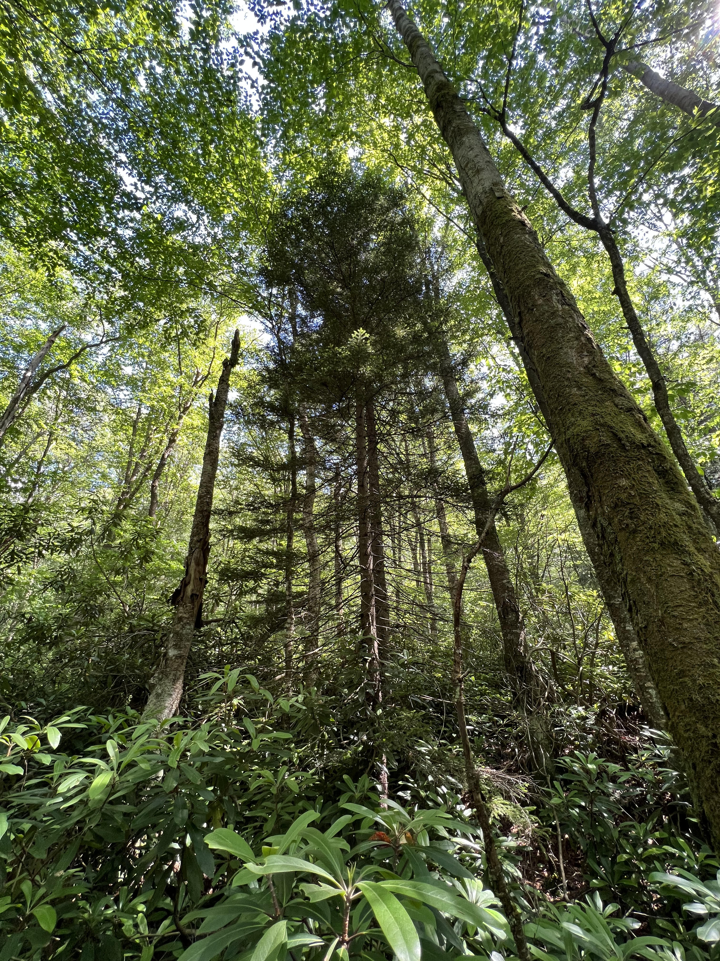 “Generally, red spruce is perfectly happy to lose the race to the top of the canopy,” says Humbert.